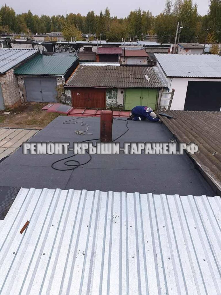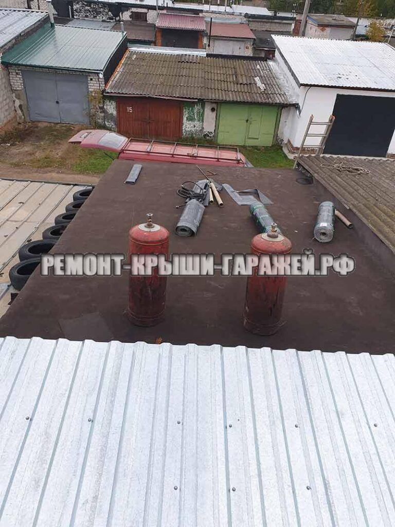 - Наплавление нового материала Линокром (технониколь) на поверхность крыши гаража.